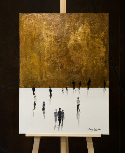 Przedstawiam Państwu „Balladę o szczęśliwych ludziach 2” – drugą odsłonę cyklu, która jest świadectwem mojej głębokiej fascynacji oraz artystycznego hołdu złożonego legendarnej chińsko-francuskiej malarce Zao Wou-Ki. Ten obraz akrylowy, o imponujących wymiarach 70×50 cm, przenosi widza w krainę swobodnej ekspresji i subtelnych, lecz potężnych emocji, charakterystycznych dla moich poszukiwań w sztuce abstrakcyjnej.