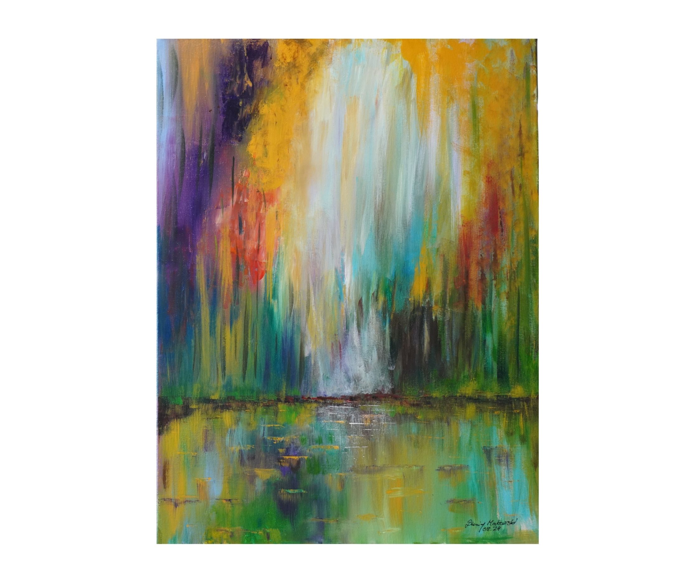 Przedstawiam Państwu „Leśną Zjawę” – dzieło, które jest świadectwem mojej fascynacji tajemnicą i magią natury, przetworzoną w język abstrakcji. Ten obraz akrylowy, o imponujących wymiarach 80×60 cm, przenosi widza w krainę swobodnej ekspresji i subtelnych, lecz potężnych emocji, charakterystycznych dla moich poszukiwań w sztuce abstrakcyjnej.