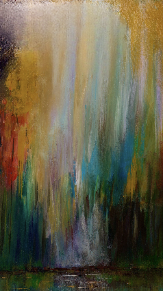 „Leśna Zjawa” to nie tylko obraz, to wizualna podróż do głębi leśnego krajobrazu, postrzeganego przez pryzmat wyobraźni. Zastosowana technika akrylowa pozwoliła mi na stworzenie dzieła o bogatej fakturze i dynamicznych warstwach koloru. Odcienie zieleni, brązów, błękitów, a może i tajemniczych fioletów czy czerni, przenikają się, tworząc płynne przejścia i głębokie cienie, które nadają kompozycji wrażenie nieskończonej przestrzeni i ruchu. Choć jest to abstrakcja, staram się w niej oddać esencję lasu – jego gęstość, światłocień przebijający się przez liście, szept wiatru czy obecność czegoś niewidzialnego, eterycznego. Każde pociągnięcie pędzla jest precyzyjnie przemyślane, a jednocześnie zachowuje spontaniczność, co jest kluczowe w malarstwie abstrakcyjnym, które ma oddać niewerbalne narracje i stany emocjonalne. Obraz jest wykończony specjalnym werniksem, który chroni kolory przed blaknięciem i nadaje im subtelny, satynowy blask, podnoszący jego estetyczną wartość.