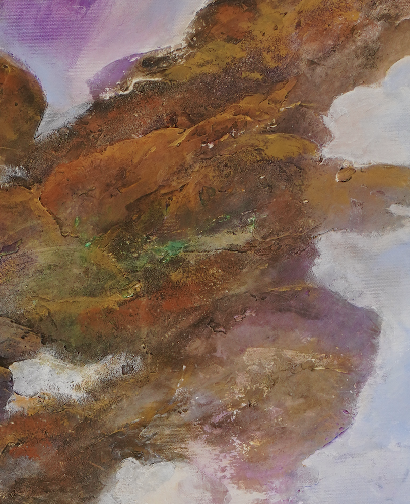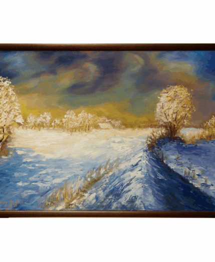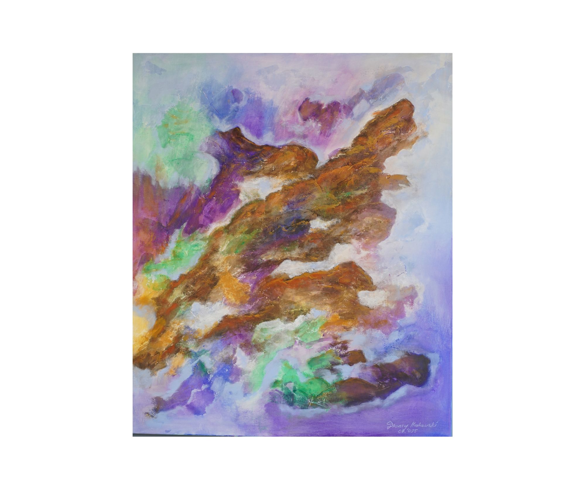 „Najdalsza gwiazda” to nie tylko obraz, to wizualna podróż w głąb nieznanych przestrzeni. Zastosowałem tutaj połączenie farb akrylowych z pastą strukturalną, co pozwoliło mi na stworzenie dzieła o niezwykłej, trójwymiarowej fakturze i dynamicznych warstwach koloru. Kompozycja składa się z nieregularnych, organicznych kształtów w odcieniach głębokich brązów, ochry i złota, które zdają się unosić na tle eterycznych błękitów, fioletów i delikatnych zieleni. Pasta strukturalna nadaje obrazowi chropowatości i sprawia, że światło pięknie załamuje się na powierzchni, tworząc wrażenie głębi i kosmicznych formacji. Całość przypomina mgławice, obłoki gazu i pyłu, z których rodzą się gwiazdy, lub też pradawne skały unoszące się w kosmicznej pustce. Każde pociągnięcie pędzla i nałożenie pasty jest precyzyjnie przemyślane, a jednocześnie zachowuje spontaniczność, co jest kluczowe w malarstwie abstrakcyjnym, które ma oddać niewerbalne narracje i stany emocjonalne. Obraz jest wykończony specjalnym werniksem, który chroni kolory przed blaknięciem i nadaje im subtelny, satynowy blask, podnoszący jego estetyczną wartość.