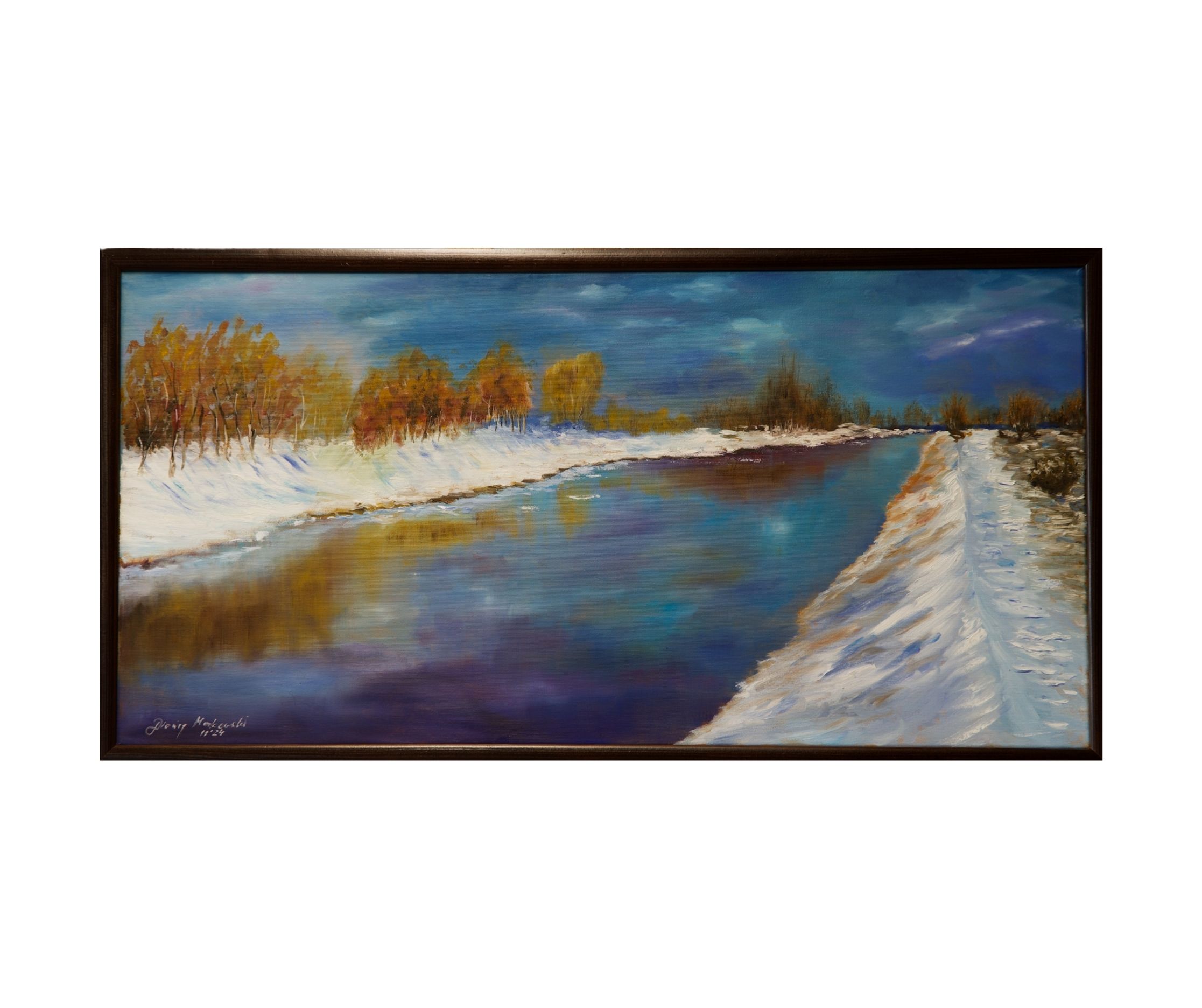 Przedstawiam Państwu „Wspomnienie” – dzieło, które jest świadectwem moich poszukiwań artystycznych w temacie ulotnych chwil i nostalgii za minionym, przedstawione w formie melancholijnego, ale pełnego subtelności pejzażu. Ten obraz olejny, o wymiarach 80×40 cm, przenosi widza w krainę refleksji i delikatnych, lecz potężnych emocji.